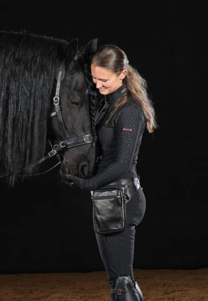 Sie sitzt stabil am Körper, verrutscht nicht, lässt sich links wie rechts tragen – und bleibt sogar beim wildesten Galopp sicher am Bein.