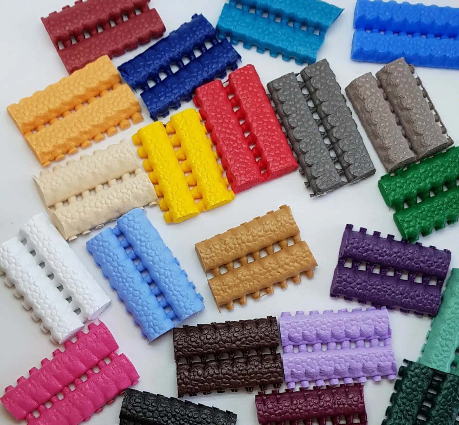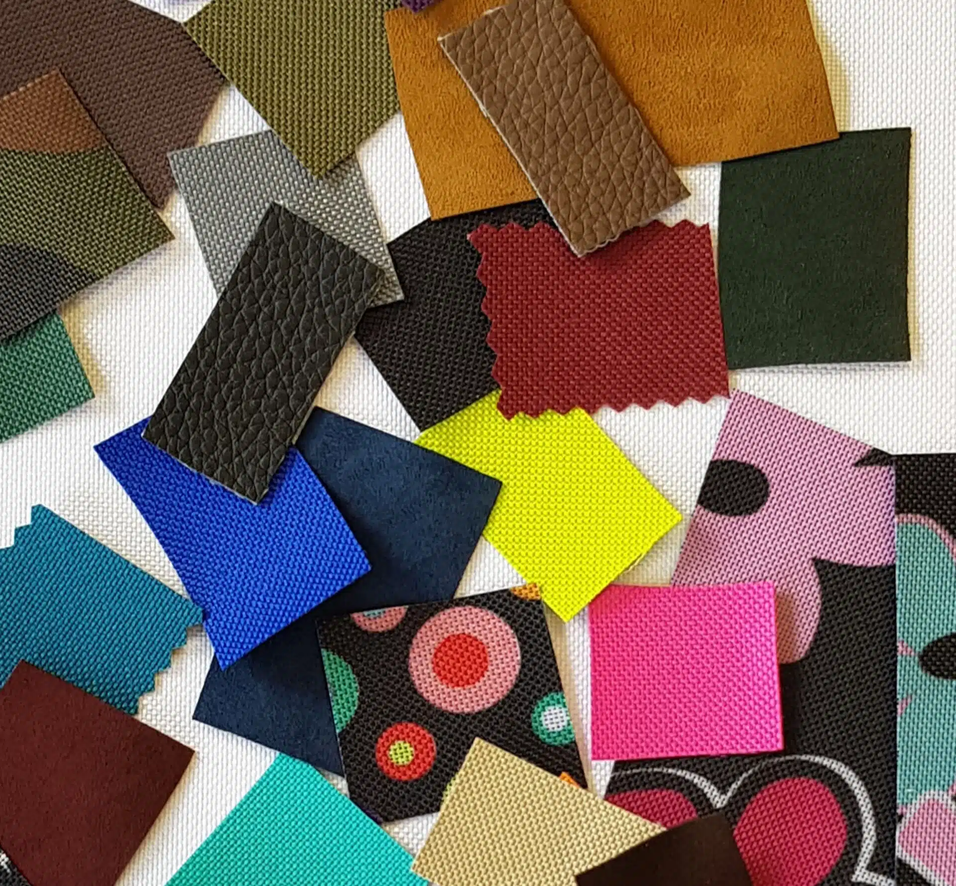 Es stehen fünf Bunte Tüten zur Auswahl für die Materialien: Biothane, Polster, Seil, Filz und Stoff.