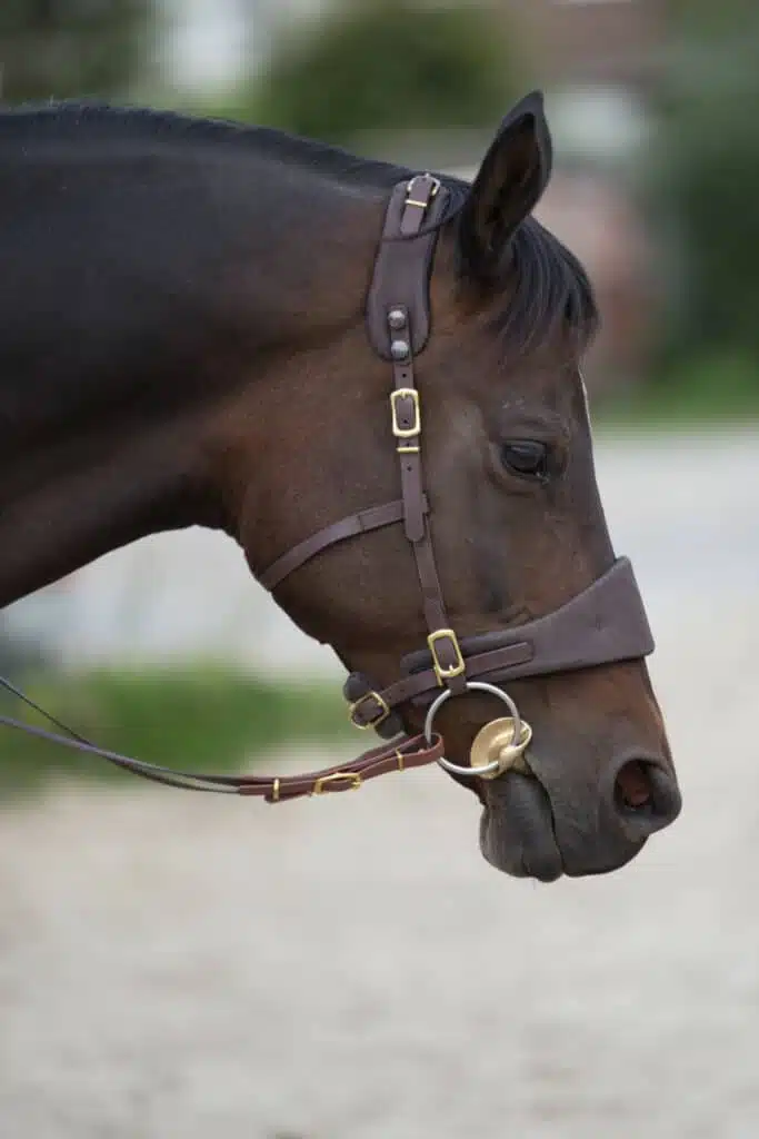 Wenn du eine Trense im englischen/iberischen Stil möchtest, dann hol dir einfach in unserem Shop ein separates Nasenpolster dazu. Dadurch liegt das Gebiss besonders ruhig im Maul und wird durch den Nasenriemen zusätzlich stabilisiert – ideal für sensible Pferde. Der Druck wird dabei teilweise vom Nasenriemen abgefedert, was diese Verschnallung auch im Fahrbereich beliebt macht.