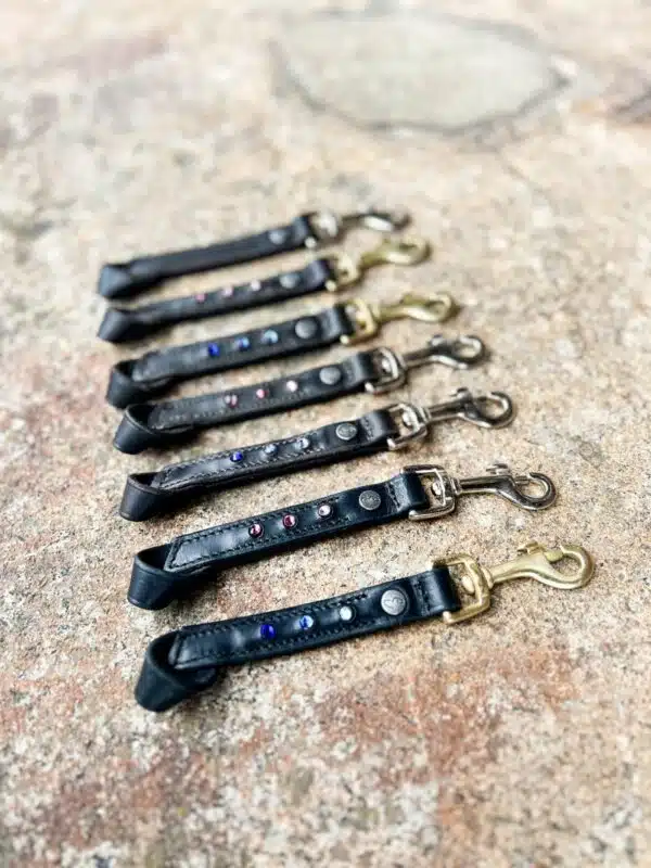 Equiclick® einfach an den Sattel klicken, Gerte hindurchschieben: fertig. Die Gerte hängt sicher und stabil am Equiclick® vor dem Sattel. Gesamtlänge inkl. Karabiner: 6 cm