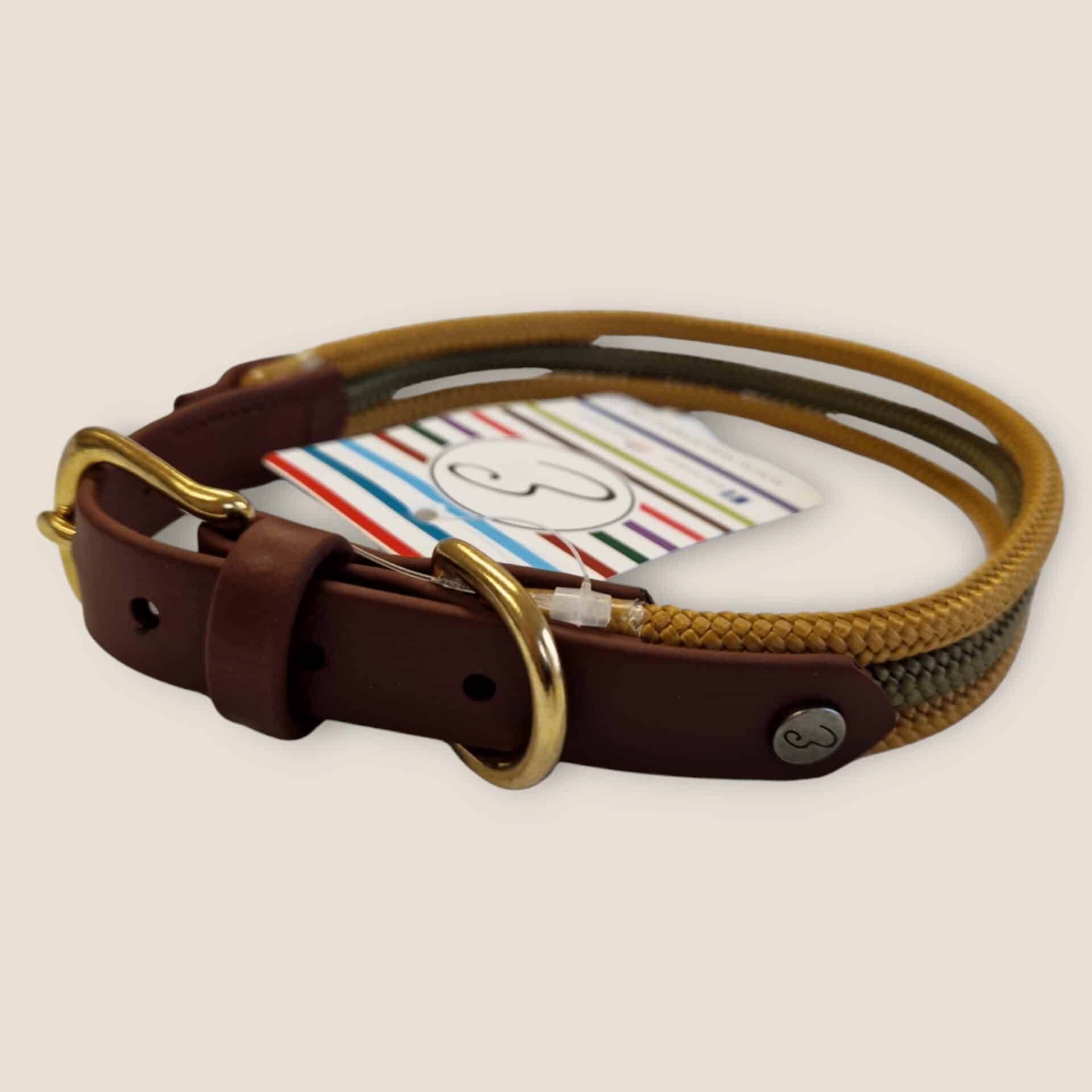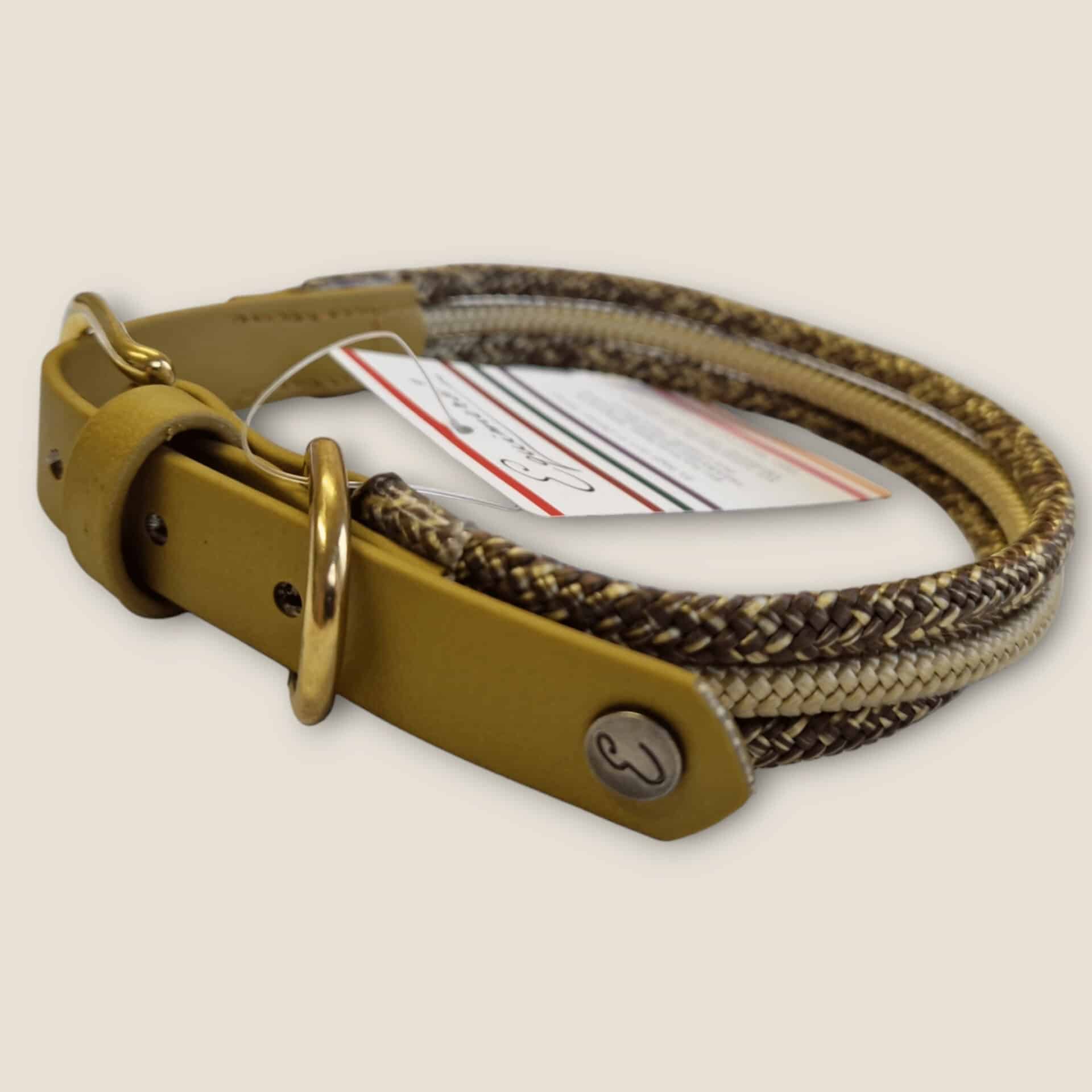 | Seilhalsband | Biothane: Rotbraun, Seil: Karamell-Olive-Karamell, Biothane: Gold, Seil: Rustygold-Gold-Rustygold, Komplett Schwarz |