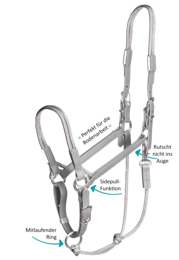 Ob Bodenarbeit oder Horsemanship : Das Taomero® von Equimero ist die erste Wahl, wenn es um Trainingshalfter geht. Erfahrene Trainer und Ausbilder wie z.B. die Pferdewissenschaftlerin Dr. Vivian Gabor wissen die Vorzüge des Taomeros® seit Jahren zu schätzen. Biothane verleiht dem anschmiegsamen, leichten (300g) Taomero® die nötige Stabilität. Mithilfe der Schnallen sowie des Knotens unterhalb der Ganasche lässt sich schnell die Größe verstellen, und der Karabinerverschlusses macht das An-und Ausziehen des Taomero® kinderleicht! Dank des mitlaufenden Halfterrings liegt dieses Trainingshalfter, das auch gebisslos als Sidepull oder in Kombination mit Bithangern sogar als Trense genutzt werden kann, sehr ruhig und rutscht nicht ins Auge! Zehn verschiedene Größen können kombiniert werden, und es stehen mehr als 40 Biothane- und Seilfarben zur Auswahl. Wir fertigen das Taomero® sowie alle unsere Produkte in Handarbeit in Deutschland. Renommierte Ausbilder, Trainer und Therapeuten zählen ebenso zu unserem Kundenstamm wie Reiter aus allen Sparten.
